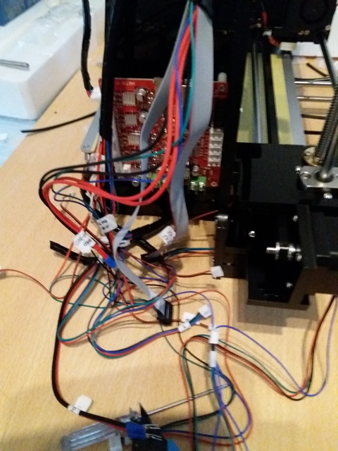 Het hotbed gemonteerd. Uit verschillende reviews over deze printer bleek dat de aansluiting van het hotbed een probleem zou kunnen zijn. De stekker zou niet stevig genoeg zijn en debedrading te dun. Blijkbaar heeft Anet geluisterd naar