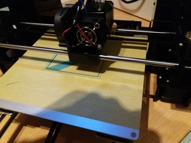 Maar al snel kon ik de eerste testprint laten maken. Een beetje spelen met de instellingen in Cura (bijgeleverd) en de hooget van de printkop t.o.v het hotbed en ik had al snel een aantal mooie prints!!!